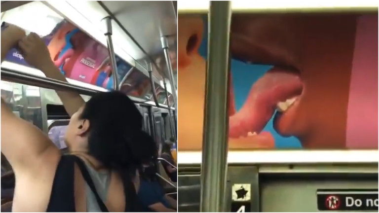 New York: Woman Rips Down Disgusting Subway Sex Ads