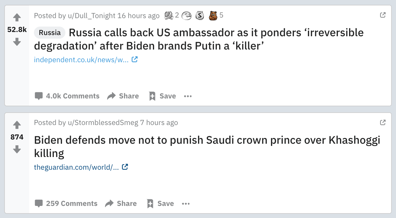 Daily Stormer - Mar 18th 2021 7:06am EDT It’s very funny to see these two items next to each other: Who did Vladimir Putin kill? We known who Prince Salman killed – he called a Washington Post journalist named Jamal Khashoggi. He ordered him kidnapped at the Saudi embassy in Turkey, and had him chopped up into pieces – inside a room at […]