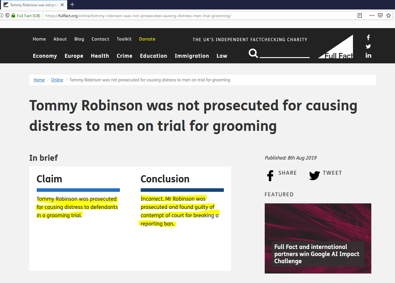 Tommy Robinson - Jan 9th 2020 3:30pm EST TR.News is hitting back at the apologists and defenders of Muslim child rapists. Today we are fact-checking fallacious fake facts. Fake facts that are pushed out by mainstream media and “so-called” fact-checking websites don’t seem to get it right for some reason? Don’t believe the lies! How many times have you read obfuscated fakery on […]