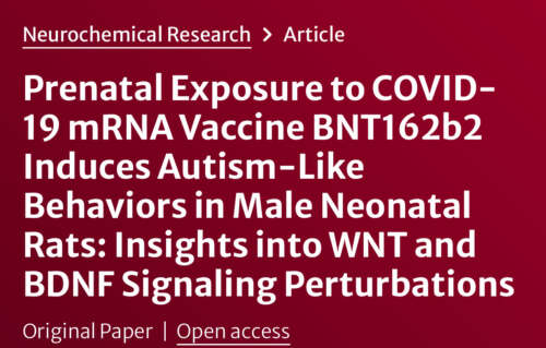 Alex Berenson - Jan 19th 2024 2:00pm EST The babies of pregnant rats given Pfizer’s mRNA Covid shot had sharply lower levels of a protein crucial for learning and memory, Turkish researchers have reported. The male rat offspring also displayed behaviors that correlate to autism in humans, including reduced sociability and repetitive behaviors, the researchers reported. (Female rats did not show similar behaviors; […]