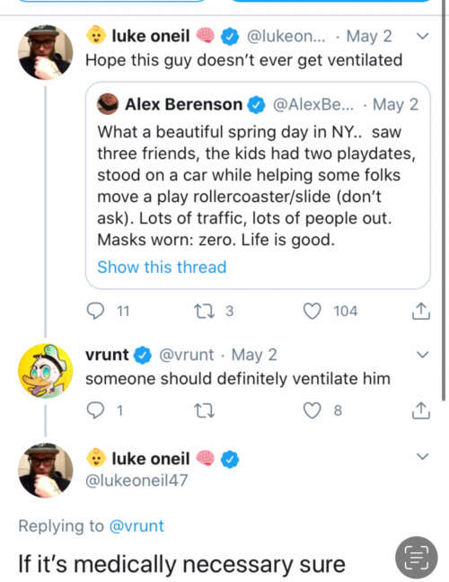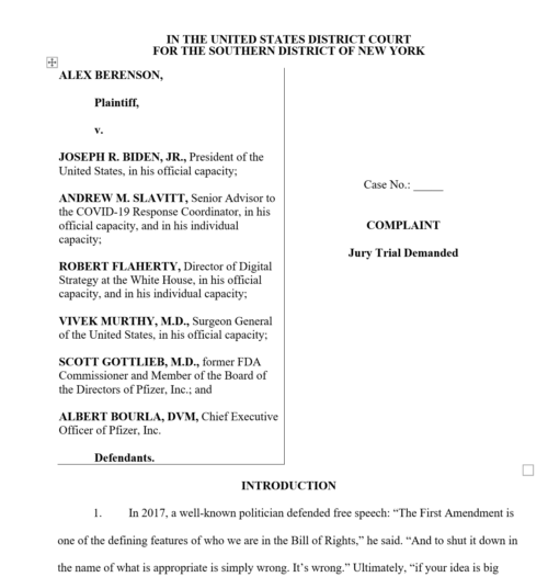 Alex Berenson - Mar 14th 2023 10:10am EDT We will be filing in the Second Circuit. Obviously, New York is a very blue state, but Knight Foundation v. Trump is my new favorite decision. And Judge William Alsup was a Clinton appointee, and he gave us a huge win in Berenson v. Twitter. (I’d sign up for Alsup again any day – too […]