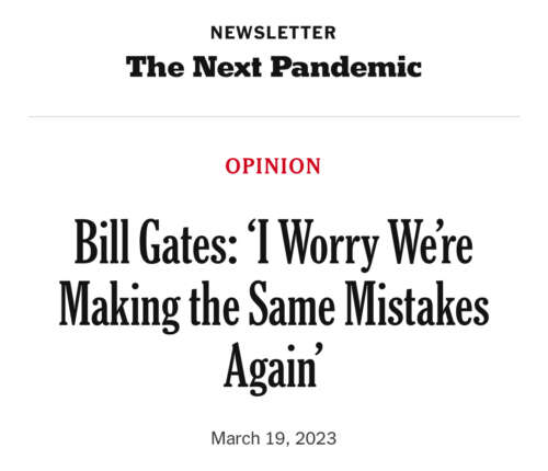 Alex Berenson - Mar 20th 2023 7:47pm EDT Bill Gates is becoming a menace. He will not leave us alone. And he’s learned all the wrong lessons from Covid. At this point he is worse than merely clueless. As one of the world’s 10 richest men and controller of a $50 billion charitable honeypot, Gates has the power to drive public health policy […]