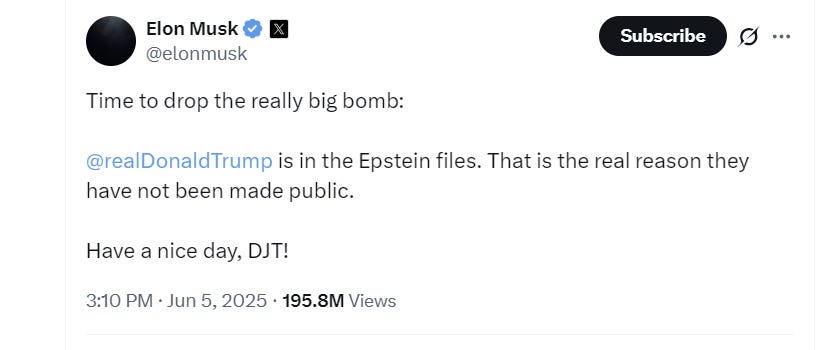 Alex Berenson - Jun 6th 2025 2:54pm EDT The partnership of Elon Musk and Donald Trump was always going to be fraught. Both are alphas, almost comically so, but their styles are at odds. Musk is an engineer, a visionary, an empire-builder. He sets a goal — electric cars, humans on Mars — and sticks to it no matter the odds. He does […]