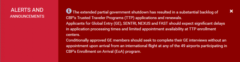 As of this morning, the Trusted Traveler Program of the Department of Homeland Security website is displaying a message regarding an extended partial government shutdown: The extended partial government shutdown has resulted in a substantial backlog of CBP’s Trusted Traveler Programs (TTP) applications and renewals. Applicants for Global Entry (GE), SENTRI, NEXUS and FAST should […]