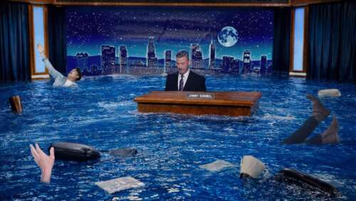 LOS ANGELES, CA — Emergency crews responded to a catastrophic incident at the famous El Capitan Theater in Hollywood last night, where an entire studio audience tragically drowned in a flood of Jimmy Kimmel’s tears.