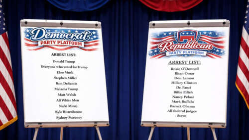U.S. — The political system in the United States took a sharp turn away from addressing practical issues facing the nation, as both the Republican and Democratic party platforms were replaced with lists of people they would arrest.