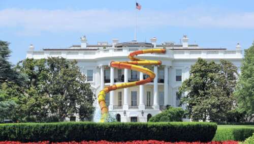 WASHINGTON, D.C. — President Donald Trump announced this week that as part of the White House renovation, he will be installing a giant water slide on the roof that will go all the way down to the Rose Garden.