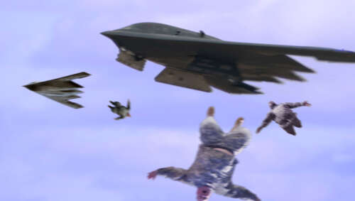 ARLINGTON, VA — In what is sure to provide much-needed relief in military spending costs, officials at the Pentagon announced today that, rather than dropping bombs, the United States Air Force will begin dropping morbidly obese airmen on enemy targets.
