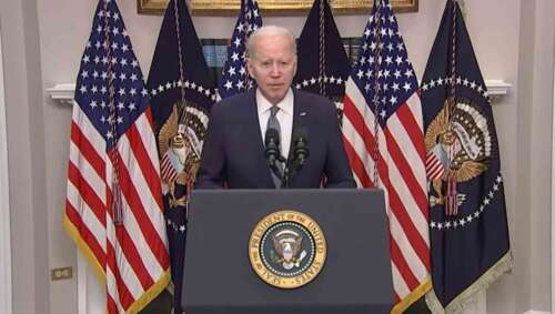WASHINGTON, D.C. — Amid the monumental collapse of several banks over the last few days and broader fears that the banking system is no longer safe, President Biden made a statement to assure Americans that all their bank deposits are perfectly safe in Ukraine.