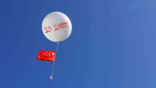 BEIJING — Following yet another pile of evidence suggesting coronavirus escaped from a lab in Wuhan, the remorseful Republic of China tried sending over another “We’re Sorry For Creating COVID” balloon to their friends in America.