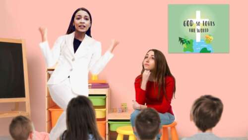 BRONX, NY — A Bible class for kindergarteners was interrupted Sunday when Rep Alexandria Ocasio-Cortez burst through the door and informed the five-year-olds in attendance that Jesus was a fascist. The children reportedly left the classroom in tears.