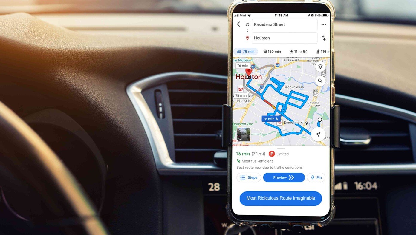 MOUNTAIN VIEW, CA – Google has introduced a new ‘Most Ridiculous Route Imaginable’ Button to its flagship navigation app, Google Maps. The button went live to users this afternoon.