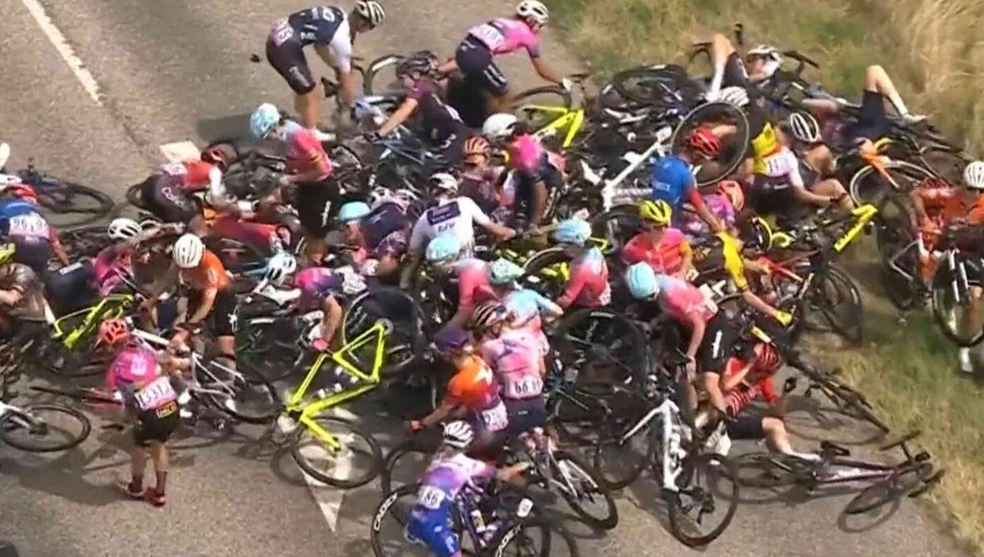 FRANCE — A spectacular crash at the Tour de France Femmes, the first-ever all-female Tour de France event following the main race, was reportedly caused by the woman in front stopping to ask for directions.
