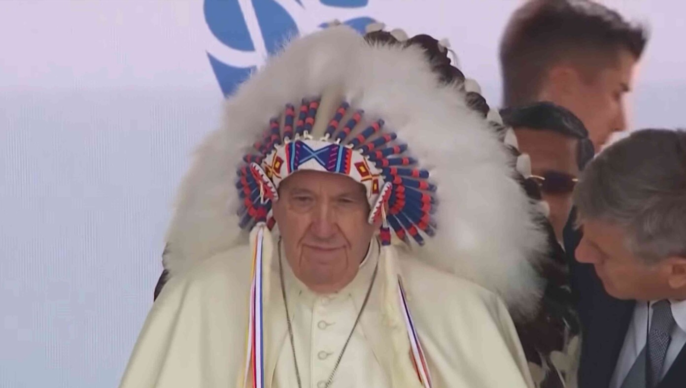 WASHINGTON, D.C. — Pope Francis donned a traditional Cherokee Indian headdress this week in preparation for a meeting with Native American Congresswoman Elizabeth Warren.