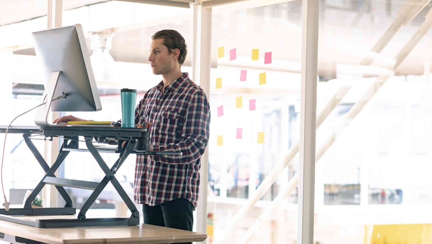 SAN JOSE, CA — According to whispered reports coming from the break room, the coworker standing at his desk obviously just hasn’t learned about chairs yet.