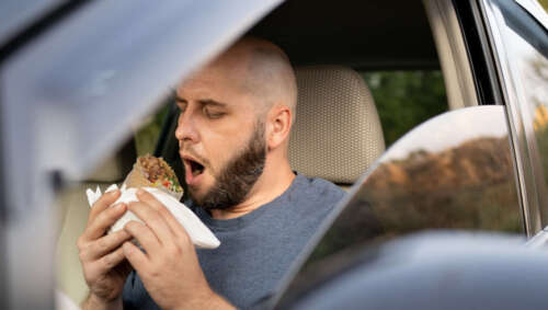 WORLD — Recent reports indicated that Jesus died for sinners all over the planet, including this gentleman who was currently demolishing a Taco Bell Grilled Stuft Burrito, alone in the driver’s seat of his 2003 Honda Civic.