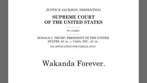 WASHINGTON, D.C. — Following the U.S. Supreme Court’s latest ruling in favor of President Trump, Justice Ketanji Brown Jackson penned a scathing rebuke in a dissenting opinion where she simply wrote “Wakanda Forever.”