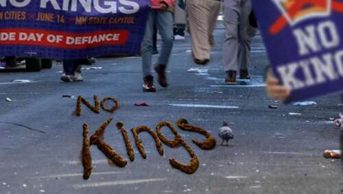 SAN FRANCISCO, CA — In an inspiring display of solidarity to voice their opposition to President Donald Trump’s policies, San Francisco protesters spelled out “No Kings” with sidewalk feces.