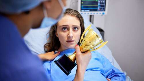 MILWAUKEE, WI — After hours of horrifying agony and non-stop screaming, local woman Jessica Poulter was awarded a cool trophy for giving birth without an epidural.