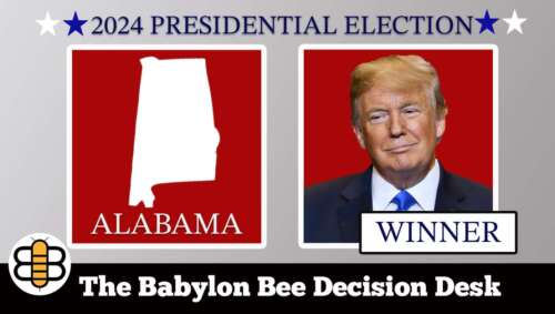 U.S. — With the final votes coming in from the post office out in Calhoun County, the Babylon Bee Decision Desk announced it is now ready to call Alabama for former President Donald Trump.