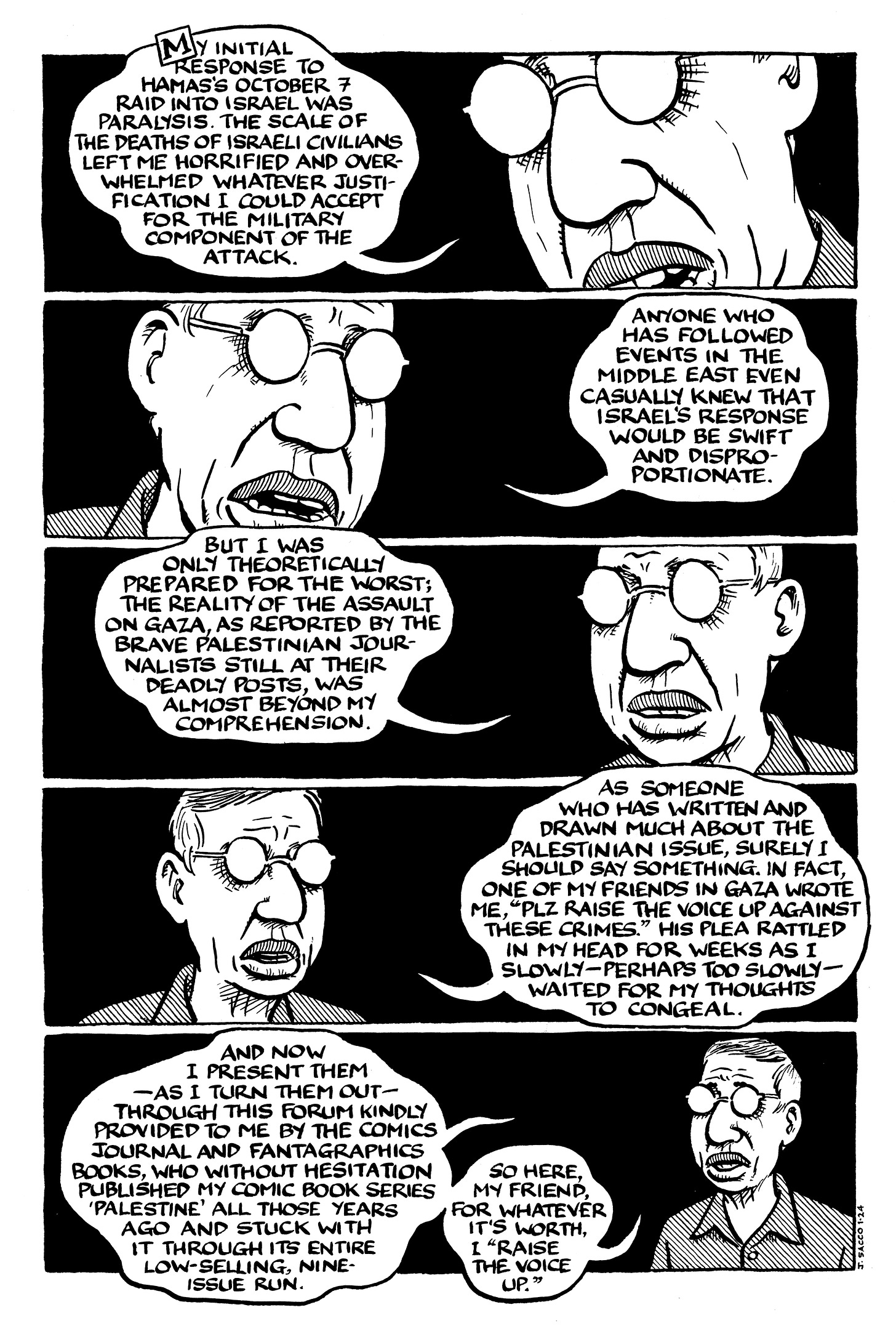 Chris Hedges - Aug 23rd 2024 8:32pm EDT Fantagraphics has released a series of graphic commentaries and reflections by Joe Sacco, author of “Palestine” and “Footnotes in Gaza,” called “The War on Gaza.” With the permission of Fantagrapahics and Joe Sacco, we are reprinting them on my Substack. By Joe Sacco Thanks for reading The Chris Hedges Report! This post is public so […]