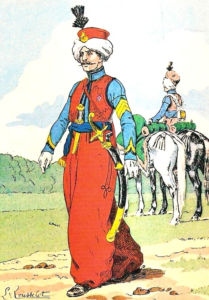 Napoleon’s North African-attired Consular Guard: a hard look to pull off 4,571 words Part 2 of 2 (Part 1 here) 2. Rage Militaire: Franco-American Zouave-mania “His parents taught him to be a cavalier, but the life of the Zou-zou he much did prefer.” — anonymous Confederate verse “The city,” one Richmond, Virginia newspaperman enthused, “was […]