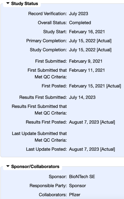 “To Evaluate the Safety, Tolerability, and Immunogenicity of BNT162b2 Against COVID-19 in Healthy Pregnant Women 18 Years of Age and Older” – Latest version (submitted July 14, 2023) on ClinicalTrials.gov
