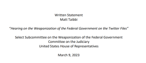 Chairman Jim Jordan Investigates the IRS’s Investigation into Journalist Mr. Matt Taibbi Investigative Journalist Mr. Matt Taibbi reported on Twitter that House Judiciary Chair Representative Jim Jordan (R-OH), has sent a second letter to the Honorable Mr. Daniel Werfel, Commissioner of the Internal Revenue Services (IRS), demanding answers to a case the IRS opened against Mr. […]