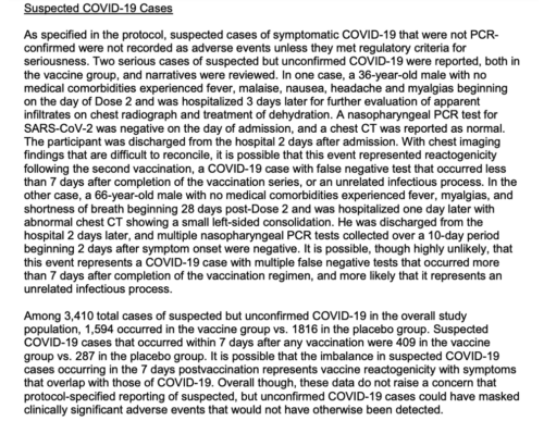 Introduction Through the review of two documents – Pharmacovigilance Plan for Biologic License Application #125742 Of Covid-19 mRNA vaccine (nucleoside  modified) (BNT162b2, PF-07302048) and 5.3.6 Cumulative Analysis of Post-Authorization Adverse Event Reports of PF-07302048 (BNT162b2) Received Through 28-Feb-2021 – referred to below as “PV” and “5.3.6,” Dr. LaLonde, the lead author of this report, came […]