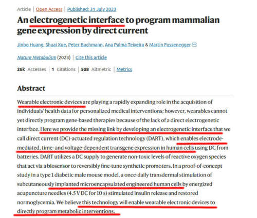 Daily Clout by Dr. Naomi Wolf - Aug 15th 2023 11:42am EDT Scientists describe a working mechanism to cure diabetes in mice Can we alter people’s genes via a surreptitious DNA transfection to remotely control their bodily functions? In the past, such discussions belonged to the realm of science fiction, supervillain cartoons, or conspiracy theories. Not anymore. A new study published in Nature Metabolism described a particular transfection of human cells (HEK293 cells) that altered […]