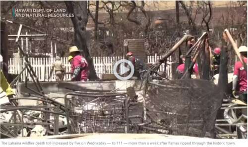 Daily Clout by Dr. Naomi Wolf - Aug 17th 2023 9:23am EDT HONOLULU (HawaiiNewsNow) – The Lahaina wildfire death toll increased by five on Wednesday — to 111 — more than a week after flames ripped through the historic town. Meanwhile, Maui continued to slowly release the names of those who have died. Three more victims, all elderly, were identified Wednesday and authorities said positive IDs were made on […]
