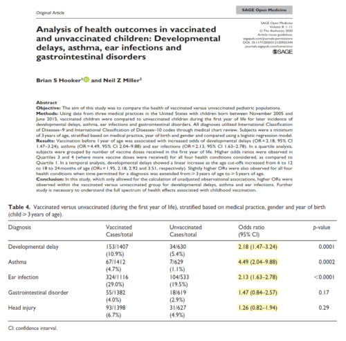 • Analysis of Health Outcomes in Vaccinated and Unvaccinated Children: Developmental Delays, Asthma, Ear Infections and Gastrointestinal Disorders