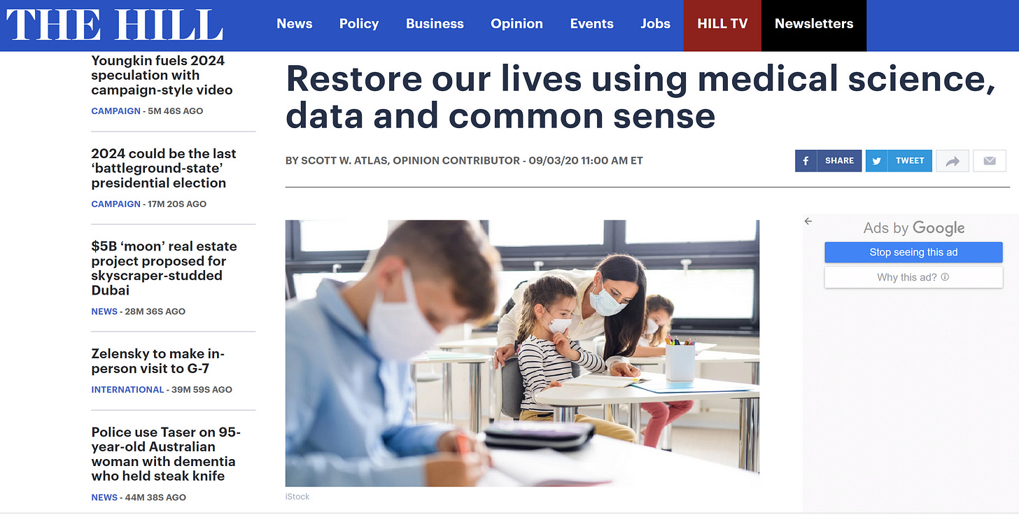 Originally published on the author’s Substack, Courageous Discourse White House Preoccupation with Testing, Contact Tracing, Masks, and Lockdowns Reveals Blindspot for Sick Americans with Acute COVID-19 I have had a chance to get to know Dr. Scott Atlas, former academic neuroradiologist and health policy scholar at the Hoover Institute, Stanford University.  I have great respect […]
