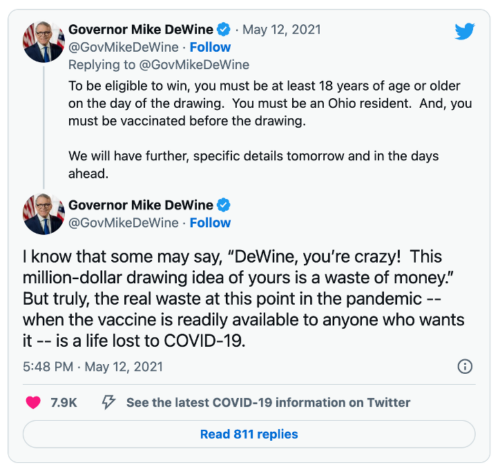 • Ohio Governor Mike DeWine’s Financial Incentives for COVID-19 Vaccination