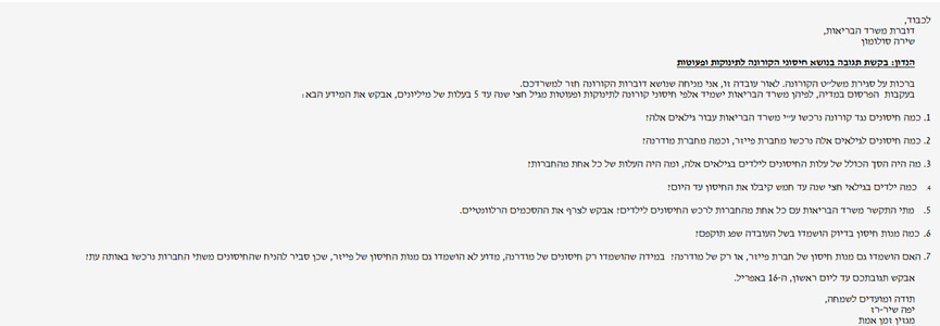 As originally published on Dr. Shir-Raz’s Substack Only 1,932 infants and toddlers have received the Covid-19 vaccine so far, the Ministry of Health said yesterday. The figure was provided in response to a request forwarded by Real Time magazine (Zman Emet) to questions regarding the vaccination of infants and toddlers. This, following recent media publications, according […]