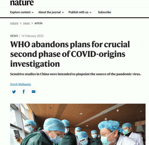 Daily Clout by Dr. Naomi Wolf - Feb 15th 2023 12:28pm EST A Co-Conspirator of Anthony Fauci, Dr. Jeremy Farrar, now Chief UN Scientist, does not want investigations to continue The Nature Magazine reported that the World Health Organization “abandons plans to investigate Covid origin.” The World Health Organization (WHO) has quietly shelved the second phase of its much-anticipated scientific investigation into the origins of the COVID-19 […]