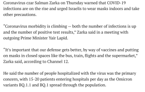 Daily Clout by Dr. Naomi Wolf - Jan 5th 2023 1:35pm EST COVID-19 to be Downgraded to a Flu in Israel This Month – Maybe Last week an Israel-based news site called Ynet reported that Israel has made the decision to end COVID-19 as an emergency health situation and downgrade it to be treated like the flu. In looking for further reporting and original sourcing for this claim, […]