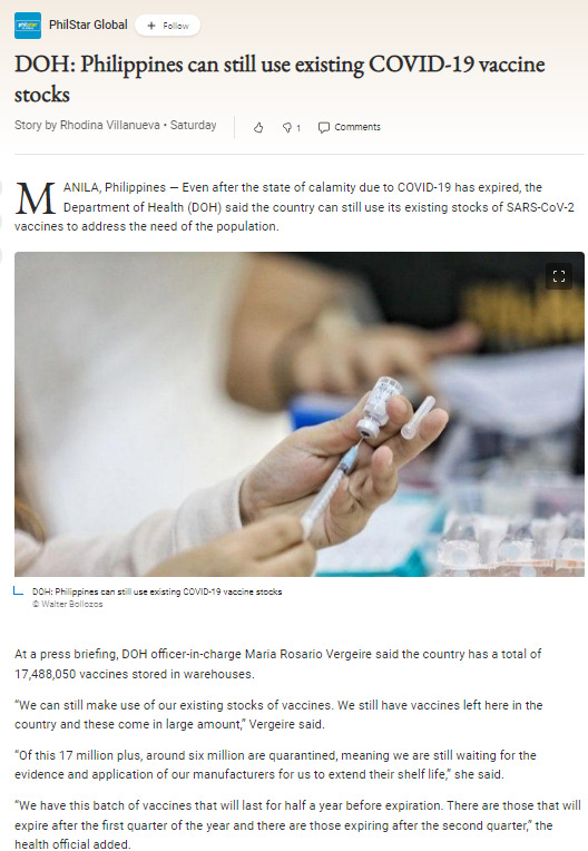 Daily Clout by Dr. Naomi Wolf - Jan 11th 2023 10:43am EST DOH announces it can still vaccinate Filipinos, use its stock (if the expired / expiring batches are applied and granted shelf-life extensions), and that it will accept donations of Bivalent products to meet the requirements of Filipinos even though the State of Calamity has expired. OIC Vergeire makes no mention of the lapsed indemnity which lapsed along […]