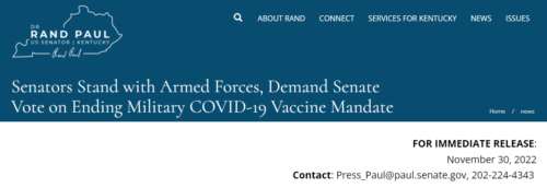 Daily Clout by Dr. Naomi Wolf - Dec 1st 2022 5:05pm EST Today (11/30/22), Rand Paul hosted a Press Conference, accompanied by several Republican Senators, demanding a vote to end Biden’s military C19 vax mandate. But before making their way to the podium, they wrote a letter to their colleagues in Washington, D.C. Here’s a quick excerpt from the 13 Republican Senators asking for an end to the mandates: […]
