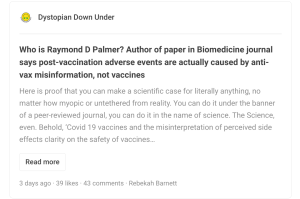 Daily Clout by Dr. Naomi Wolf - Dec 1st 2022 4:42pm EST I SPOKE TO RAY PALMER ON THE PHONE. IT WAS A PRETTY OUT THERE CONVERSATION. This Substack documents a Twitter thread follow up to my original article on Raymond D Palmer, author of a junk paper published in BioMedicine (Taipei), in which he suggests that vaccine side effects are caused by anti-vax misinformation, not vaccines. If you […]