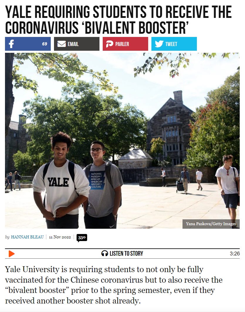 Daily Clout by Dr. Naomi Wolf - Dec 11th 2022 3:37am EST Yale University has been making headlines lately — and not in a good way — as Dr. Naomi Wolf has been giving them hell over their Covid-19 vax mandate. Yale is requiring students, most between the ages of 17 and 22, to take the bivalent booster tested on eight mice in order to continue their education for the spring […]