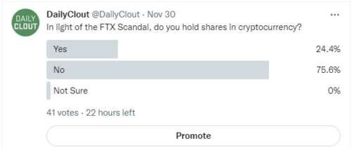 Daily Clout by Dr. Naomi Wolf - Dec 2nd 2022 3:37pm EST Social Media Poll According to our social media polls this past week, the majority of our viewership no longer hold shares in cryptocurrency amidst the FTX scandal. 75.6% percent of voters on Twitter say they no longer hold shares in cryptocurrency, while 24.4% say they still do. On […]