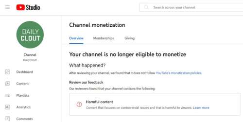 Daily Clout by Dr. Naomi Wolf - Dec 9th 2022 11:51am EST If the deplatforming of Dr. Naomi Wolf off of platforms like Facebook and Twitter were not enough, it appears that Big Tech is now going after DailyClout.io as a company, as well. YouTube has censored a number of our videos since November, and it recently issued a suspension to our channel that prevented us from […]