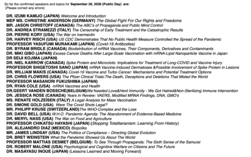 Daily Clout by Dr. Naomi Wolf - Aug 6th 2024 9:22am EDT For the first time, the DailyClout will be represented at a high level at the International Covid Summits and in direct testimony to a Parliament. On Sept 24-28, 2024, Dr Chris Flowers MD is representing the DailyClout volunteers as one of the main speakers at the 6th International Covid Summit which is taking place in […]