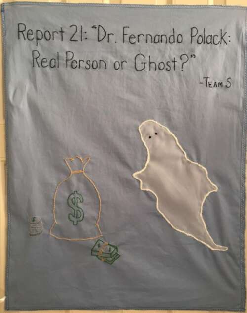 Embroidery: “Dr. Fernando Polack: Real Person or Ghost?”