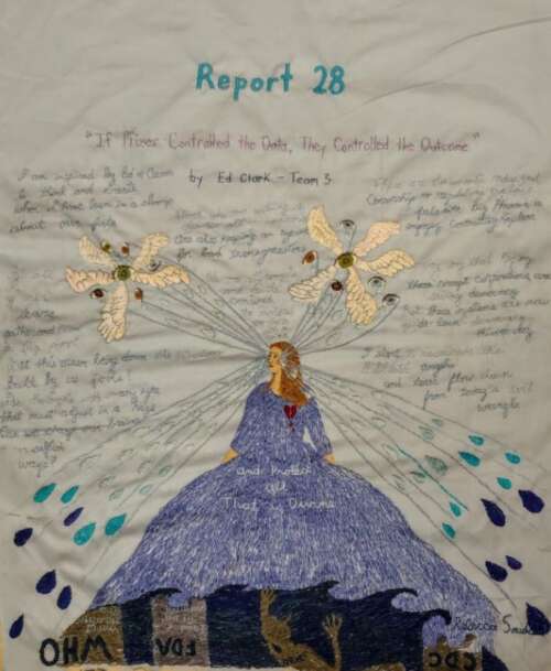 Poem/Embroidery: “If Pfizer Controlled the Data, They Controlled the Outcome”