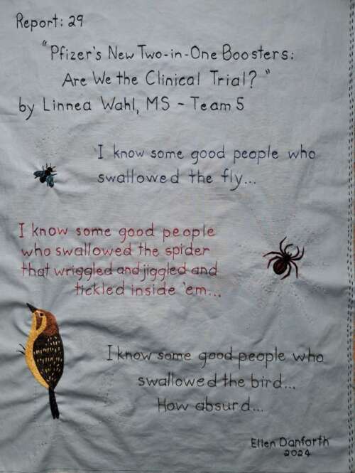 Embroidery: “Pfizer’s New Two-in-One COVID-19 Booster: Are We the Clinical Trial?”