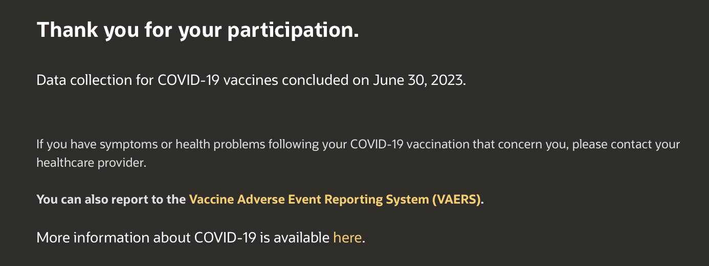 CDC Ends VSAFE Website for Vaccine After-Effects Reporting, Page Now Reads ‘Thank You For Your Participation’