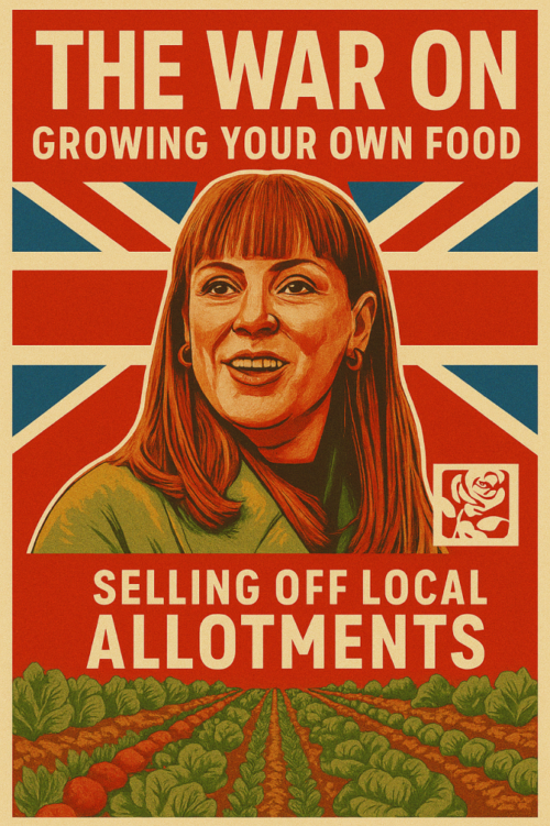 David Icke - Aug 4th 2025 3:13am EDT Ruin farmers, and stop folks growing their own food. I wonder what district I’ll compete for at the first annual hunger games. Rayner declares war on allotmentshttps://t.co/Nthi6nGgqP — Gareth Icke (@garethicke) August 3, 2025 Read more: Cult-owned Labour target allotments