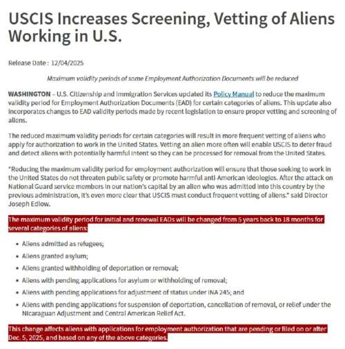 Disclose TV - Dec 4th 2025 4:51pm EST NEW – U.S. DHS cuts maximum eligibility on work permits for immigrants from 5 years to 18 months. Read more: https://www.disclose.tv/id/s2kbs3jr1c/ @disclosetv